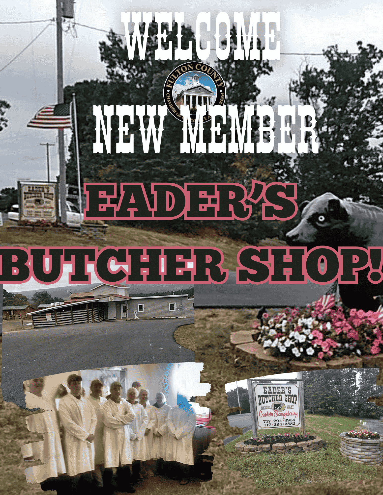 Eader's Butcher ShopEader’s Butcher Shop is a local, family-owned and operated butcher shop specializing in custom and USDA slaughter and processing. In addition to our processing services, we proudly offer a full retail selection of high-quality meats, all handled with care, craftsmanship, and attention to detail you can trust. Right in Fulton County!